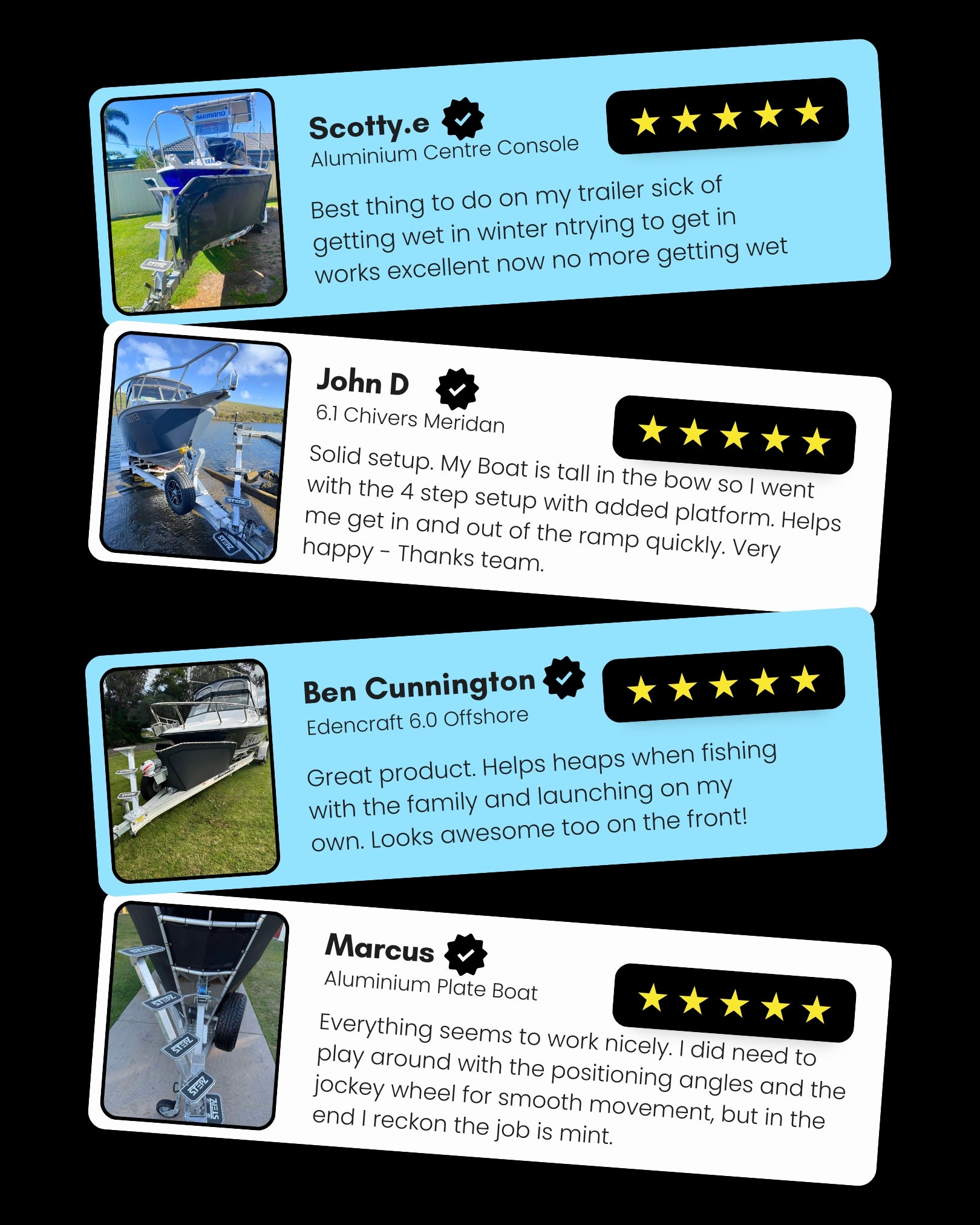 STEPZ ladders are designed to fit most setups, but trailers and boats can vary.